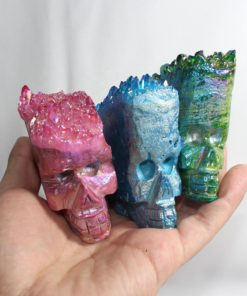 100-150g Hand Carved Electroplating aura Natural Crystal Cluster Skulls