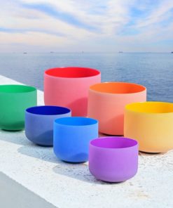 7pcs Colored Quartz Crystal Singing Bowls Chakra Notes 440hz With Case