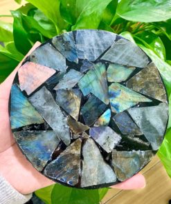 Natural Flashy Labradorite Quartz Crystal Palm Stone