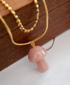 Crystal Mushroom Necklace For Women Girl Gold Necklaces