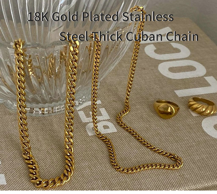 18k Gold Plated Stainless Steel Thick Cuban Chain Miami Double Layer Snake Chain Choker Necklace