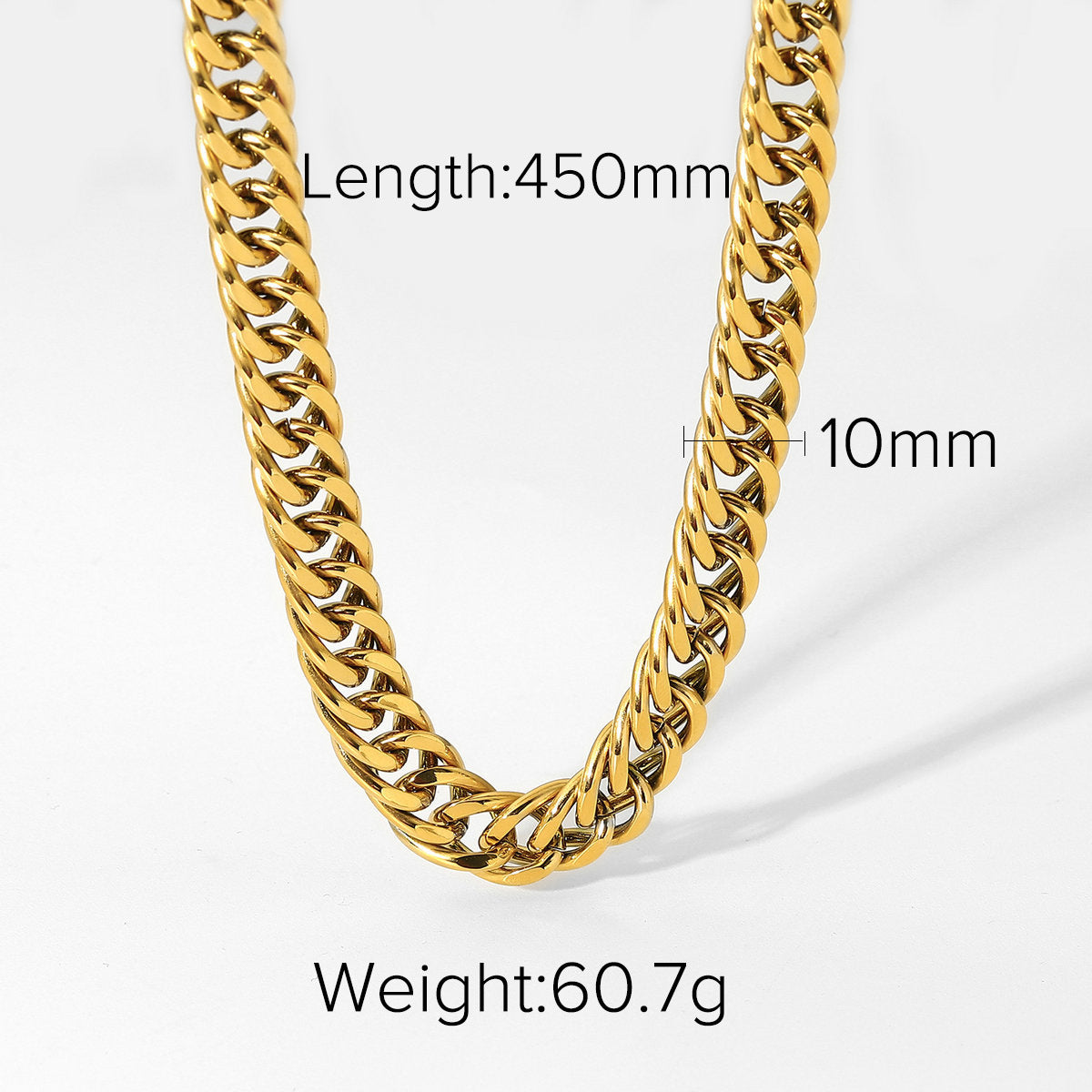 18k Gold Plated Stainless Steel Thick Cuban Chain Miami Double Layer Snake Chain Choker Necklace