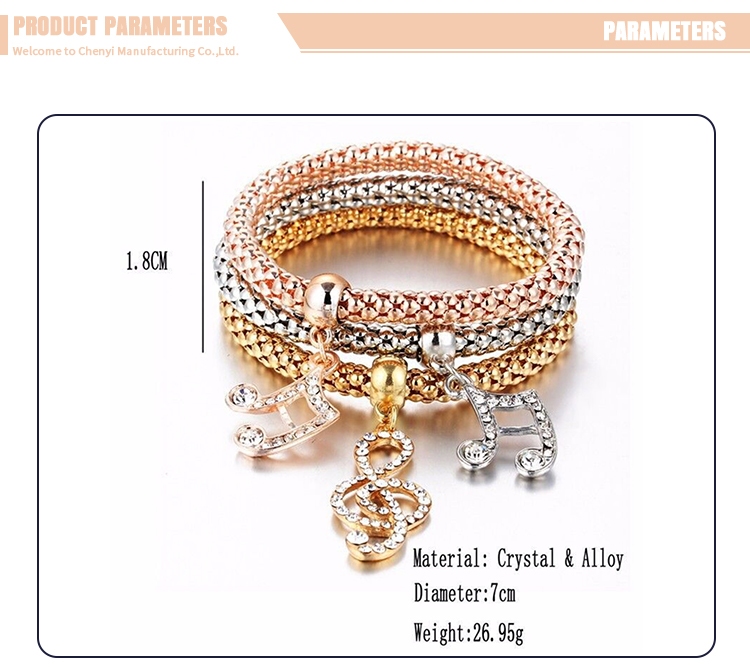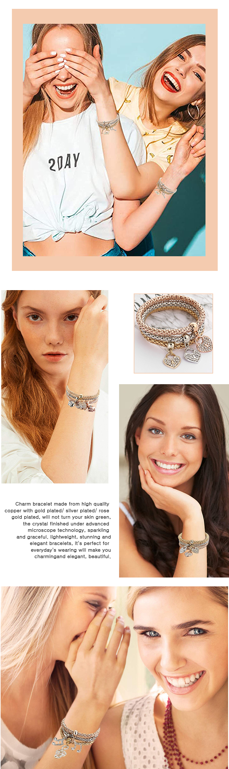2020 Hot Selling 3 Pcs Crystal Butterfly Popcorn Elastic Bracelets Set Heart Lock Charm Bracelet for Women