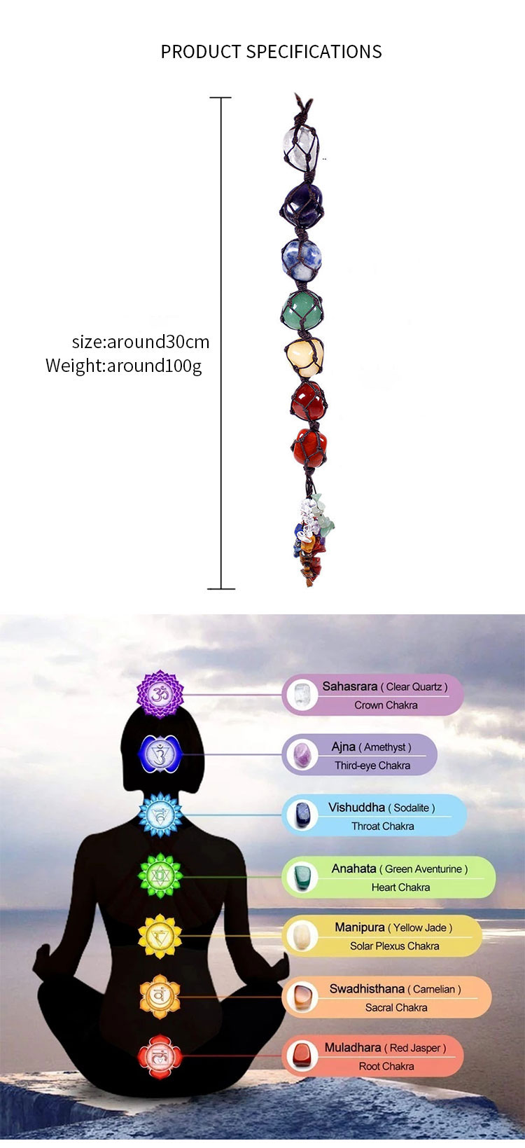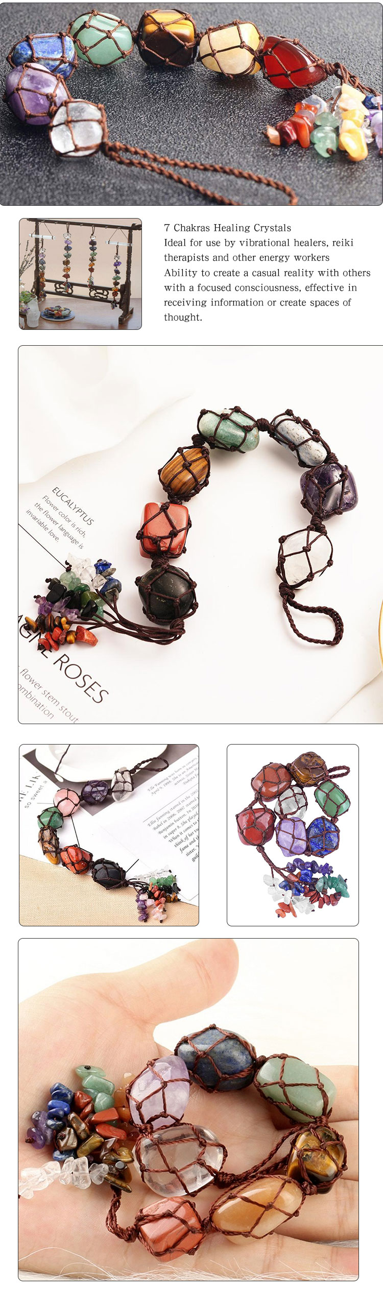 7 Chakras Colorful Quartz Raw Stone Car Hanging Pendant Handmade Crystal Stone