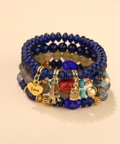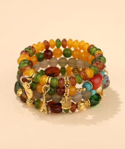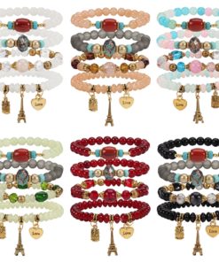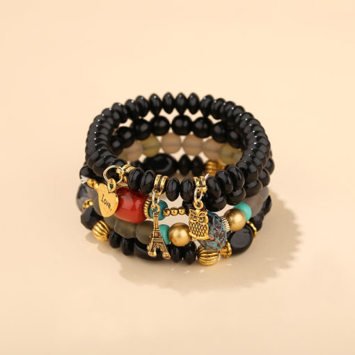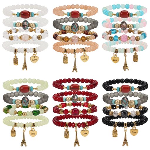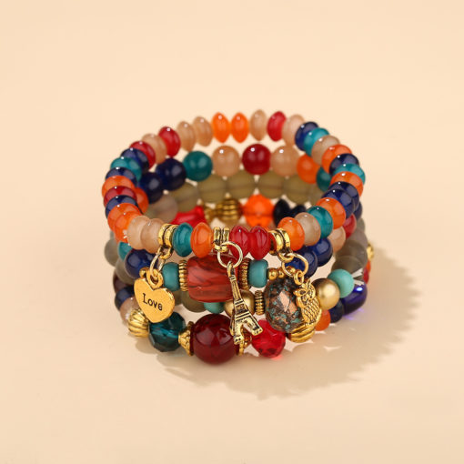 High Quality Luxury Custom Logo Boho Multi Layer Glass Women Bracelets Beaded Love Heart Pendant Bead Bracelet Sets 2022