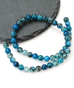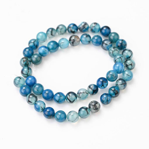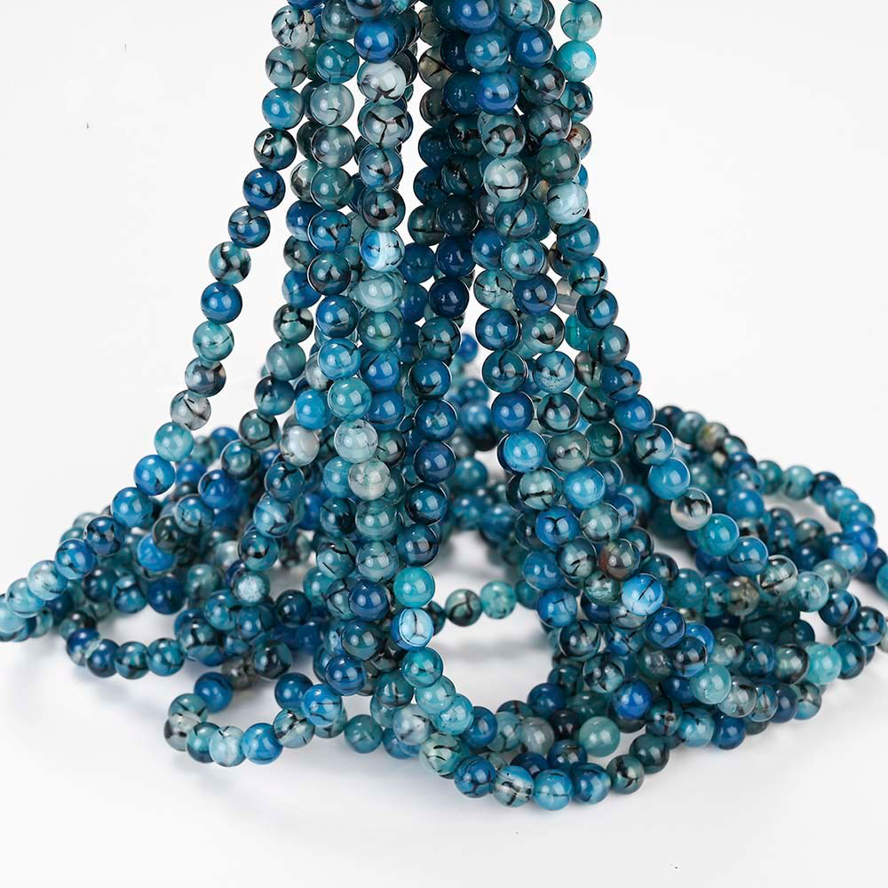 Blue Agates Beads Smooth Black Pattern Round Loose Stone Beads for Jewelry Making DIY Bracelet Necklace Charms Accessories