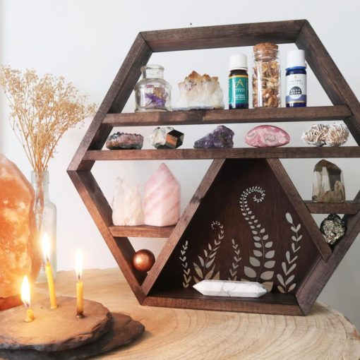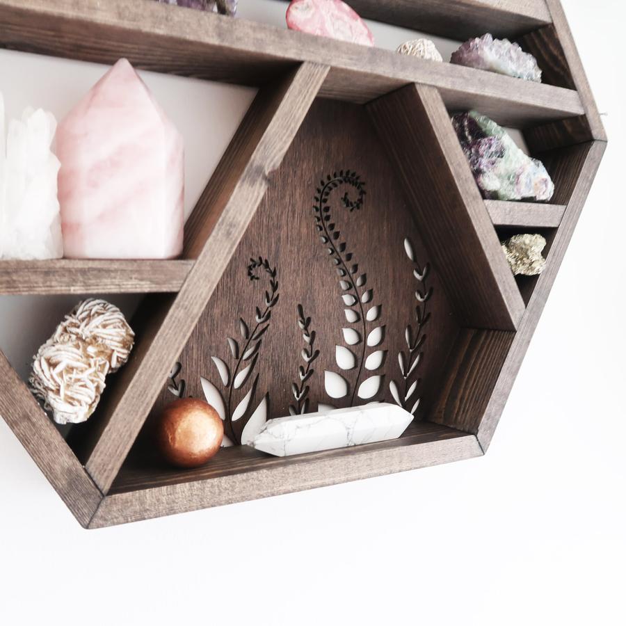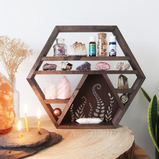 BOTANICAL WOODEN CRYSTAL SHELF