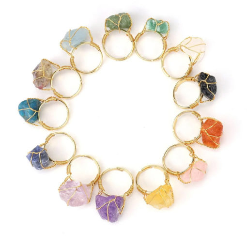 Chakra crystal ring: the colorful crystal ring decorated with copper wire, exquisite and beautiful, these crystal rings contribute to beauty, health, good luck, healing, meditation and other mysterious effects