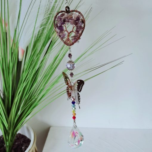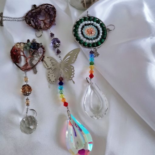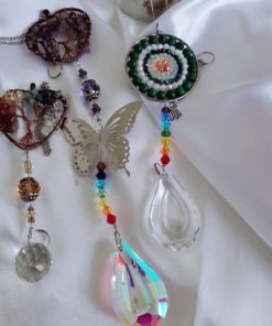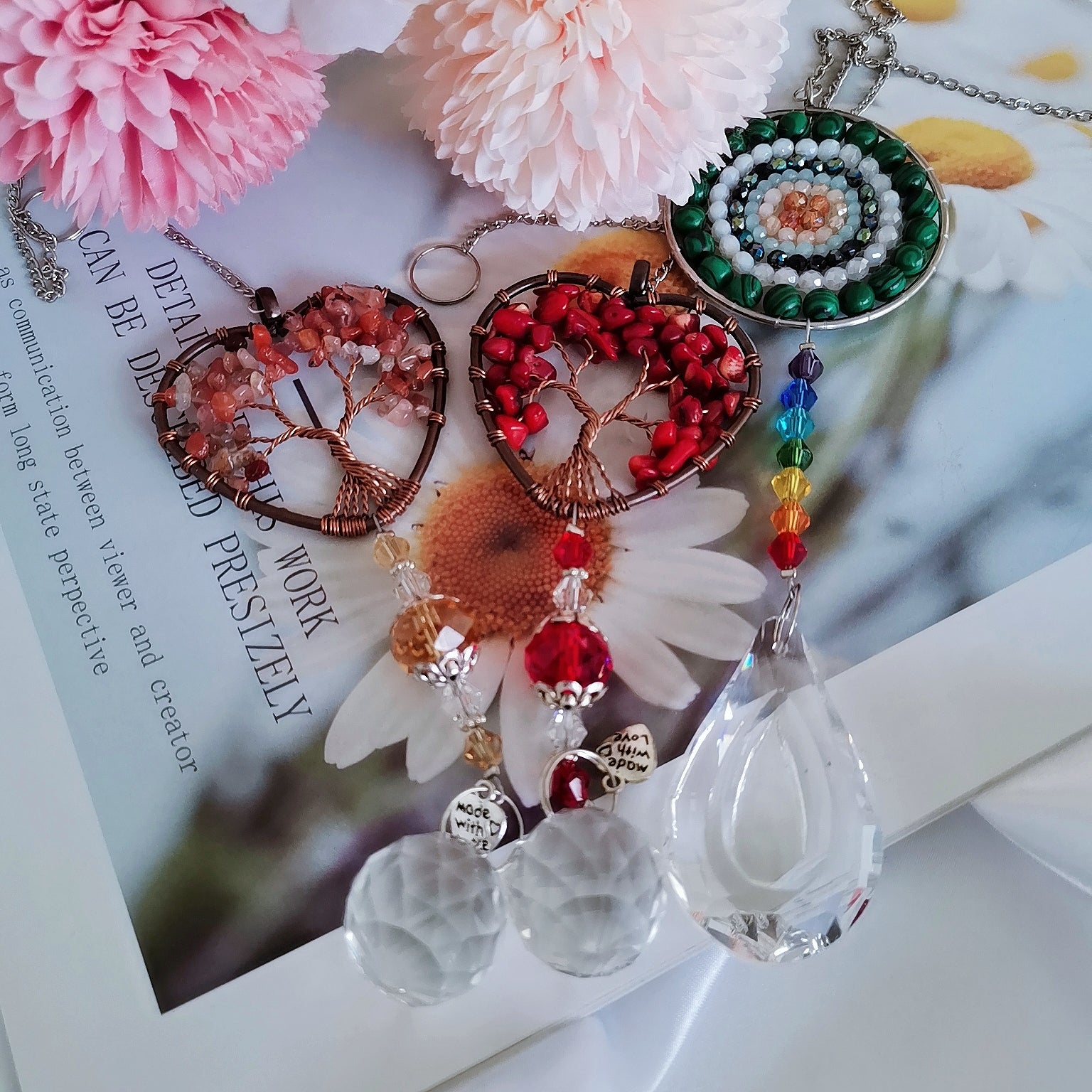 Chakra tree of life pendant with crystal prism pendant, the crystal suncatcher ornament can make the room full of rainbows, since the crystal sun catcher can reflect lights with its multi-faceted, reflect to rainbows that are form with the sun give a great light show, they cast rainbows onto the wall, floor, table, bed when you hanging it in window where the sunlight, beautiful sun catcher for home window hanging decoration