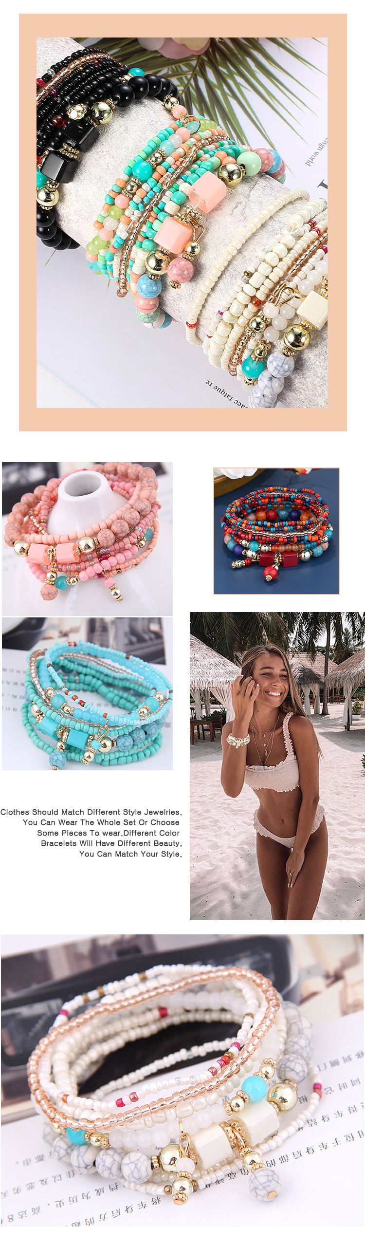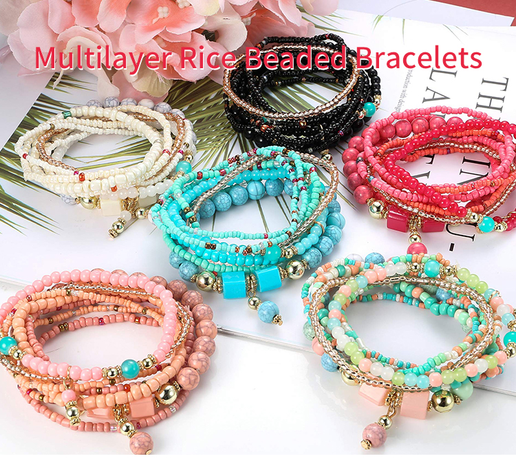 Cheap Small Beads Stretch Boho Bracelets For Women Jewelry Set Colorful Multilayer Rice Beaded Bracelets Artesanal 2022