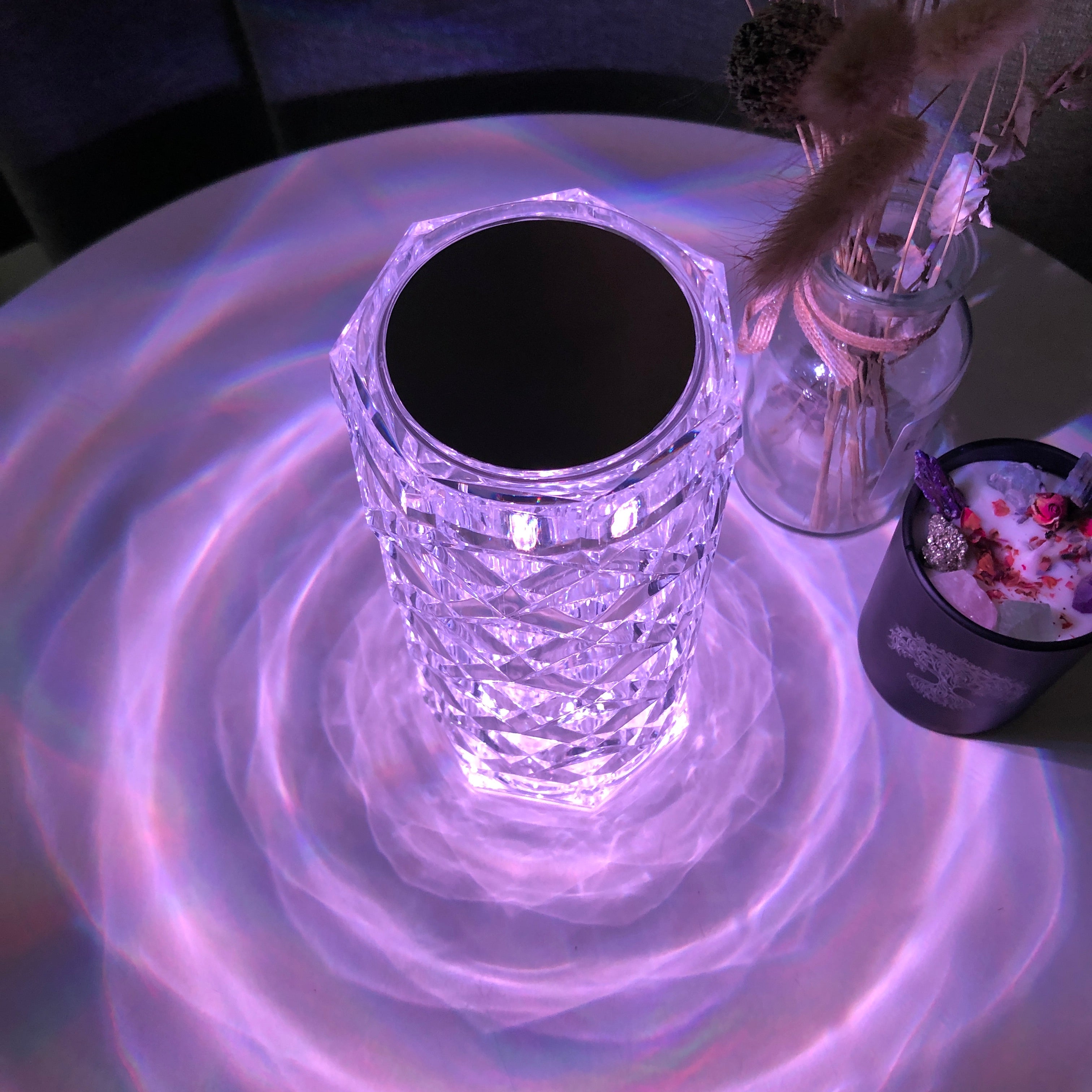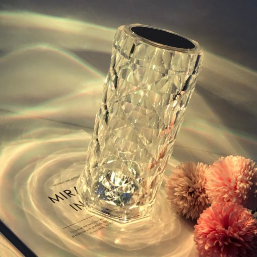 【Rose Crystal Diamond Table Lamp】Turn on this table lamp, the 3D visual effect is like a rose blooming on the table,the square cut refracts light and shadow like a diamond,reflecting a rose-shaped shadow,showing a charming light and shadow effect. This crystal table lamp is simple, luxurious, comfortable and romantic.