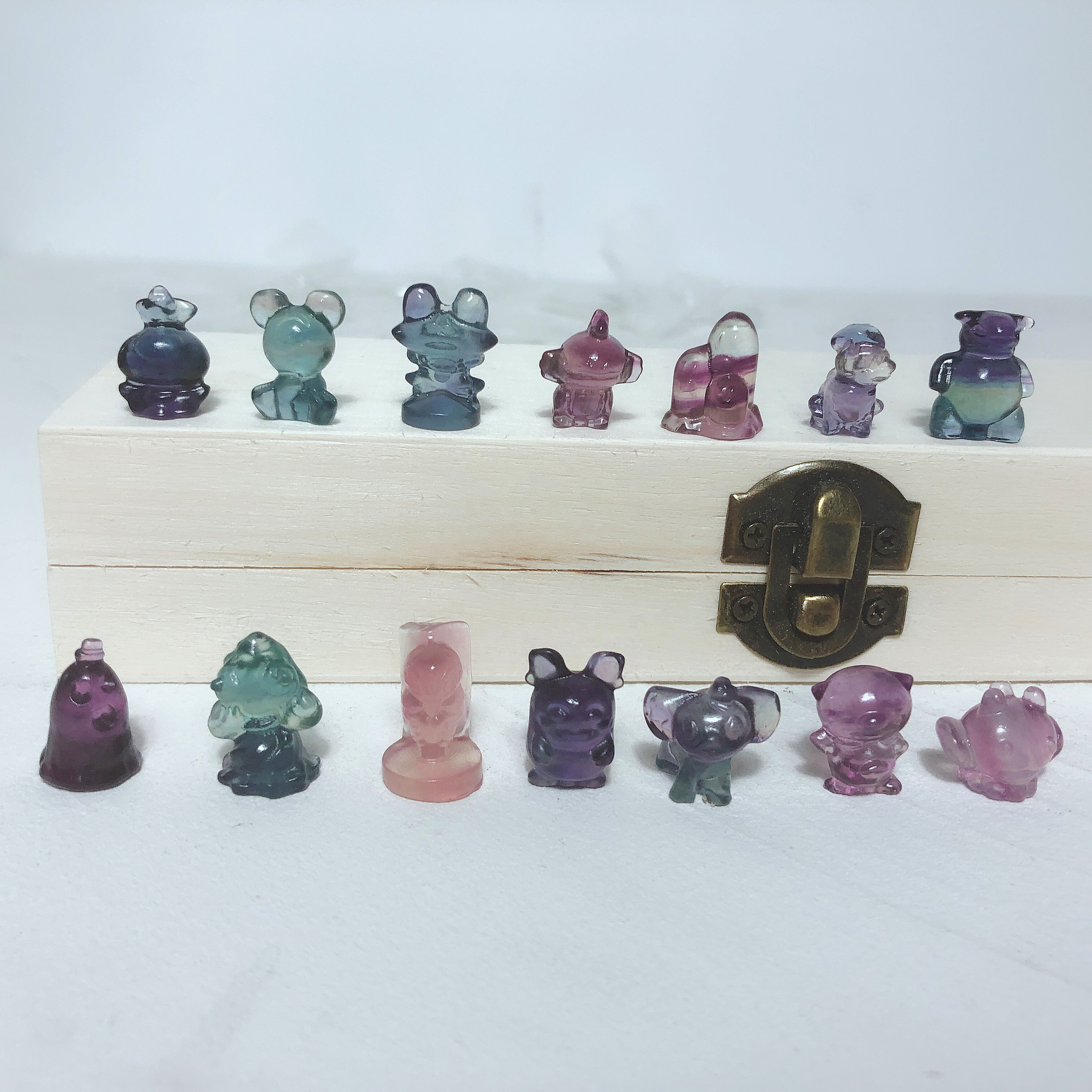 Rainbow Fluorite Pokemon Crystal Mini Pokemon Carving Crafts Pikachu Carved