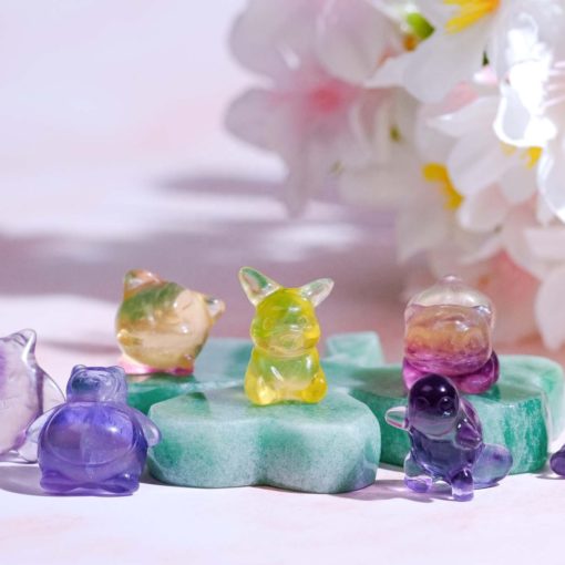 Crystal Multi-Color Fluorite Mini Pokemon Souvenir Carving Cute Rainbow Pikachu Delicate Crafts