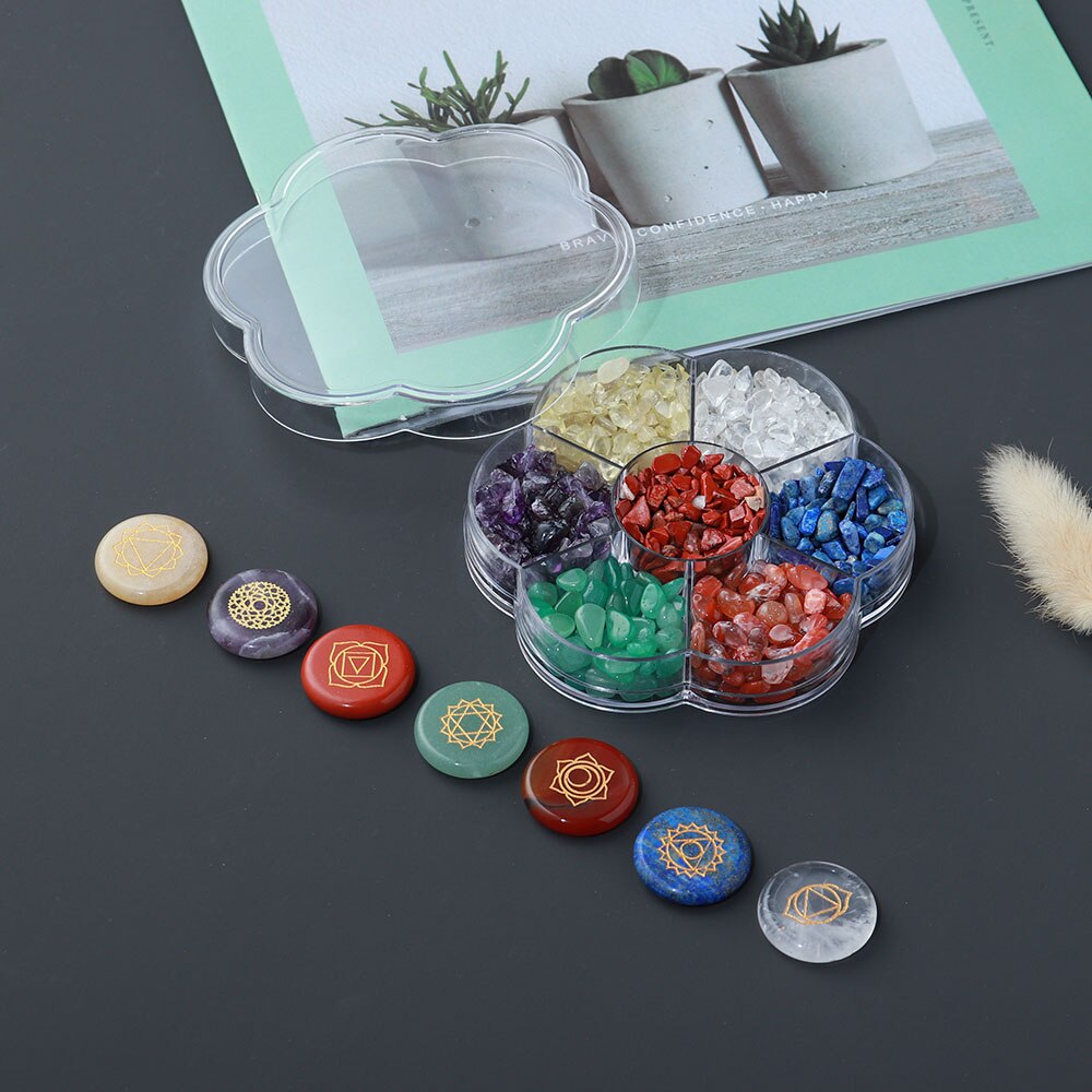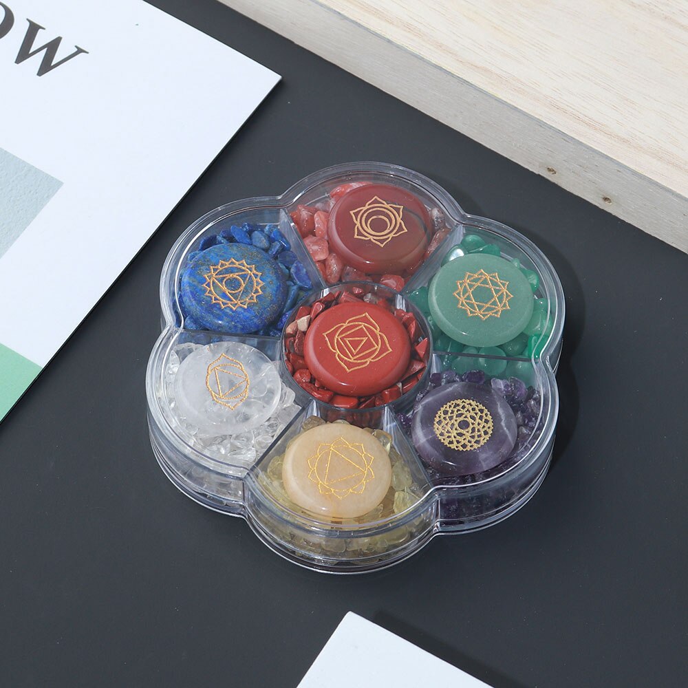 Crystal Stone Seven Chakras Mineral Specimen Collection Box Healing Stone Energy Quartz