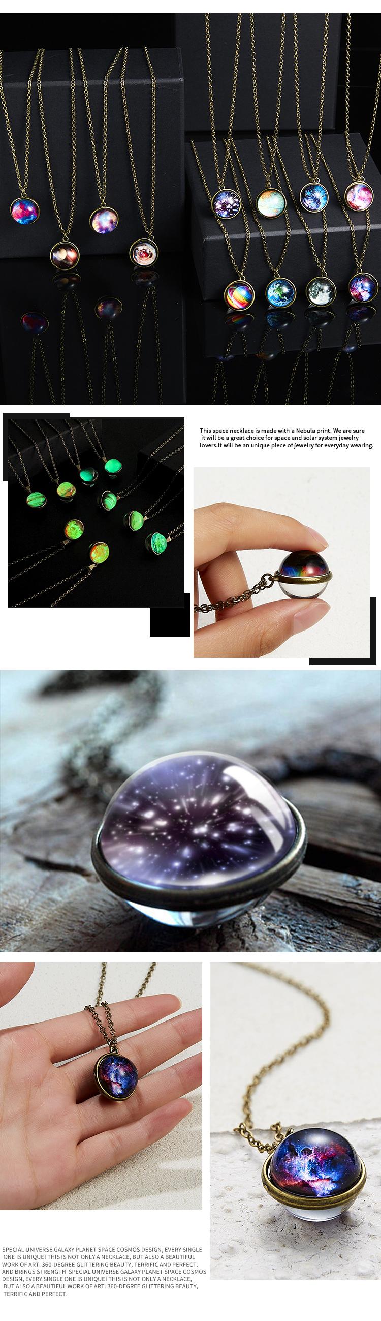 Custom Moon Star Light Necklace Jewelry Luminous Glow In Dark Moon Pendant Space Star Galaxy Universe Necklace