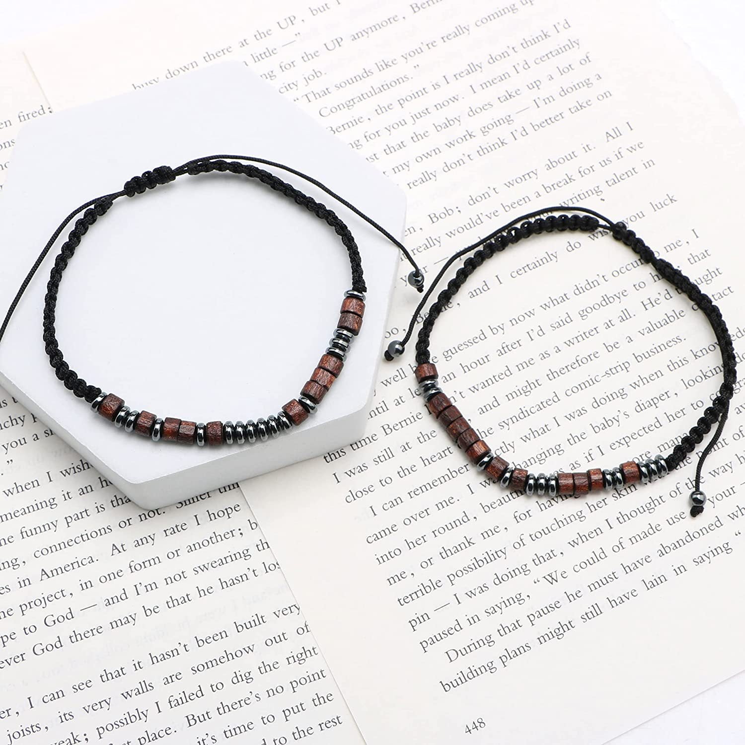 - Adjustable bracelets size to fit for most of women men and girls boys, Bracelet material waxed nylon cord, wood beads, black stone, hypoallergenic 100% healthy for skin and nature.