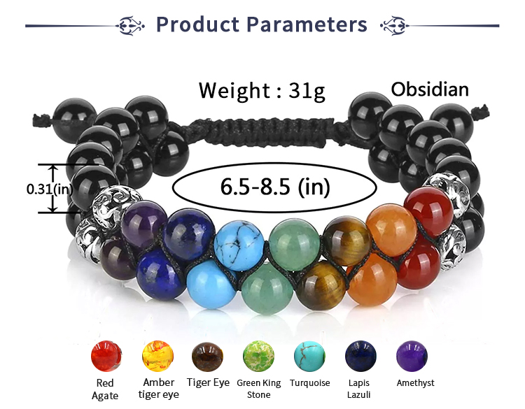 Chakra Bracelet 7 Chakras Healing Crystals Bracelet Yoga Stone Beads Bracelets Meditation Relax Anxiety Bangle for Womens Mens