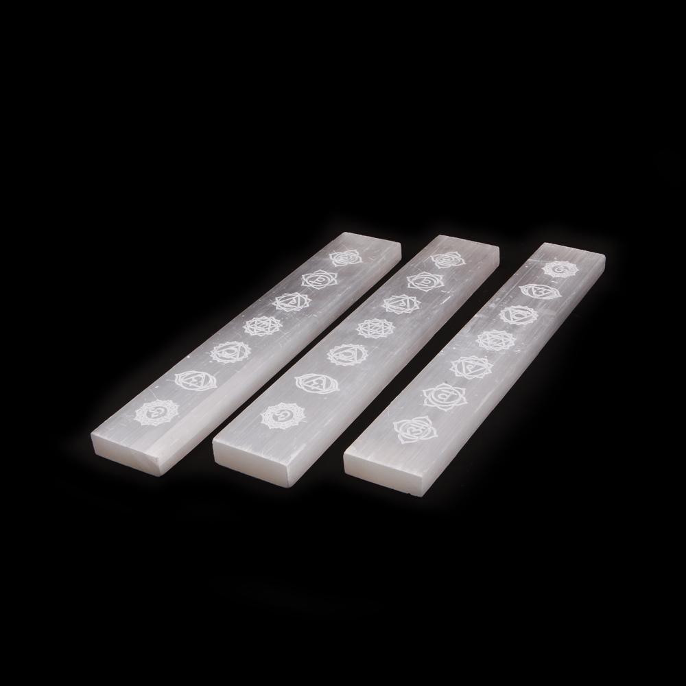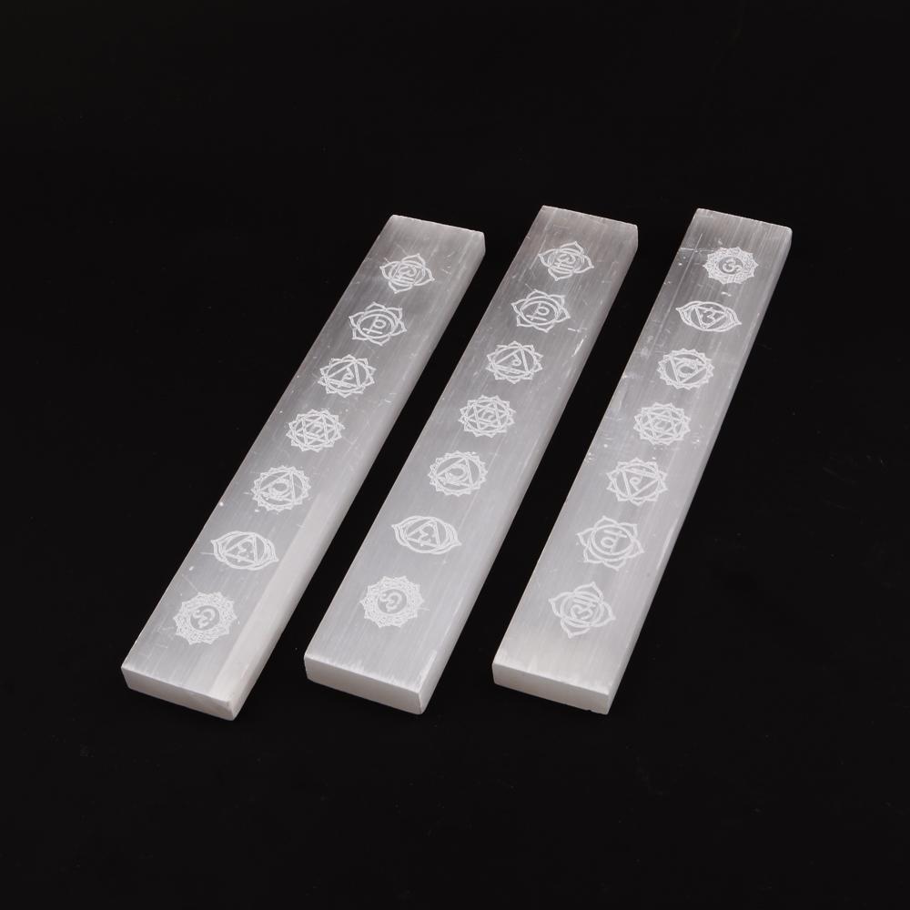 Engraved Selenite Chakras Wand Polished Large Raw Wands