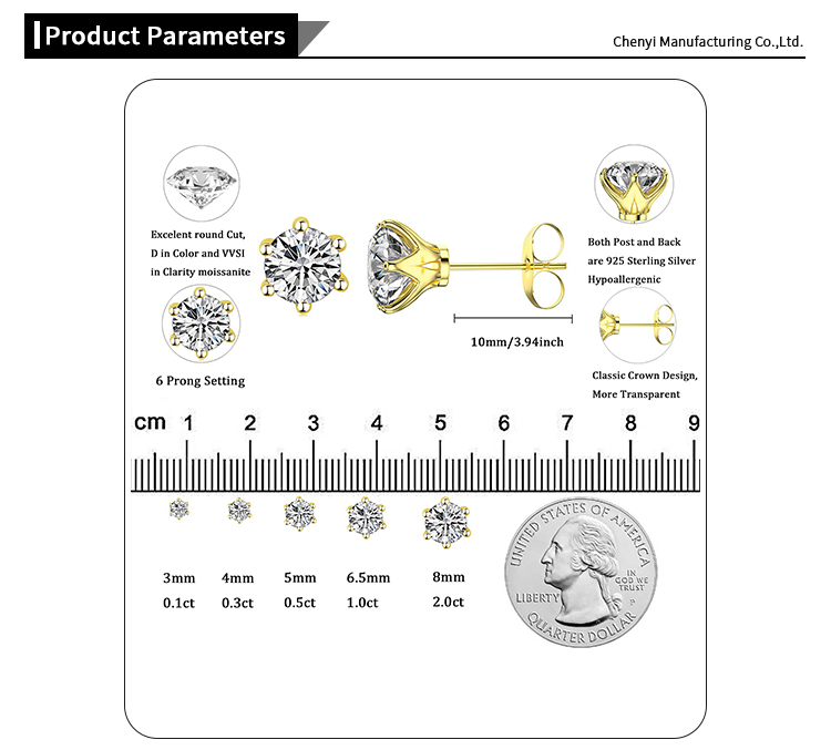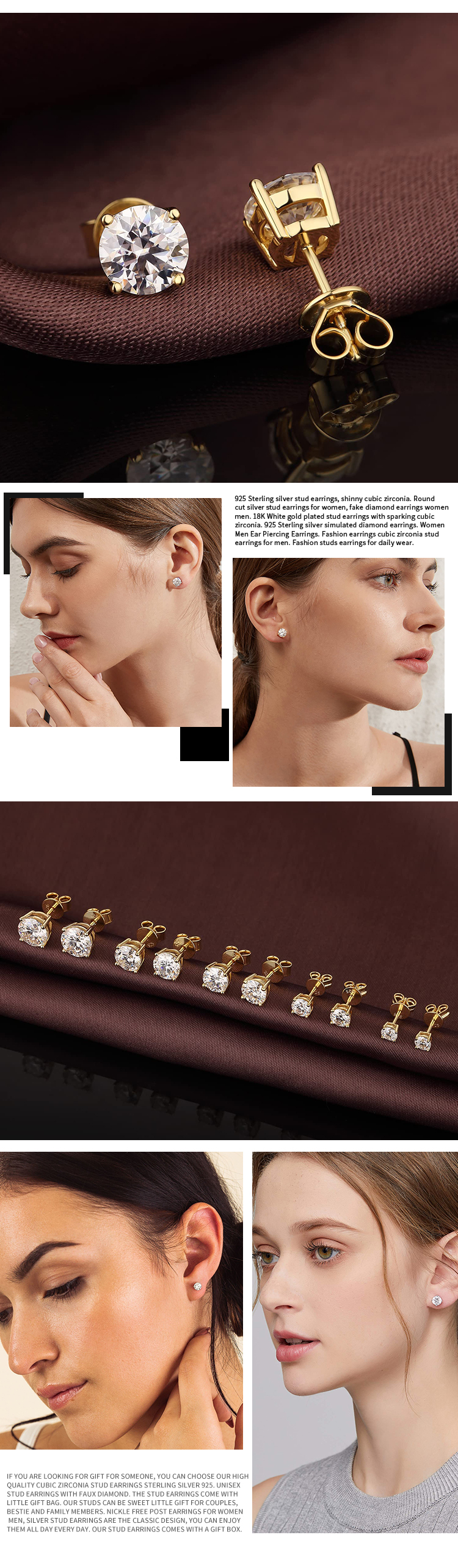 Fashion Jewelry Luxury Earrings Set Screw Back Gold Plated 925 Sterling Silver VVS Moissanite Diamond Stud Earring For Men Wome