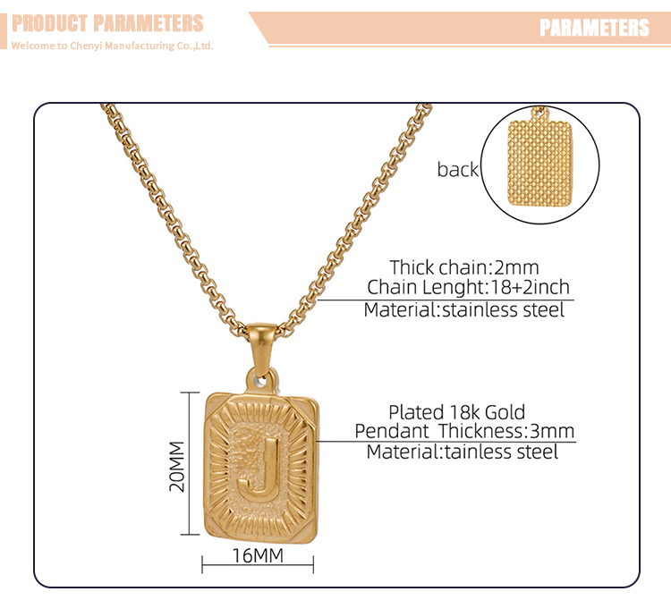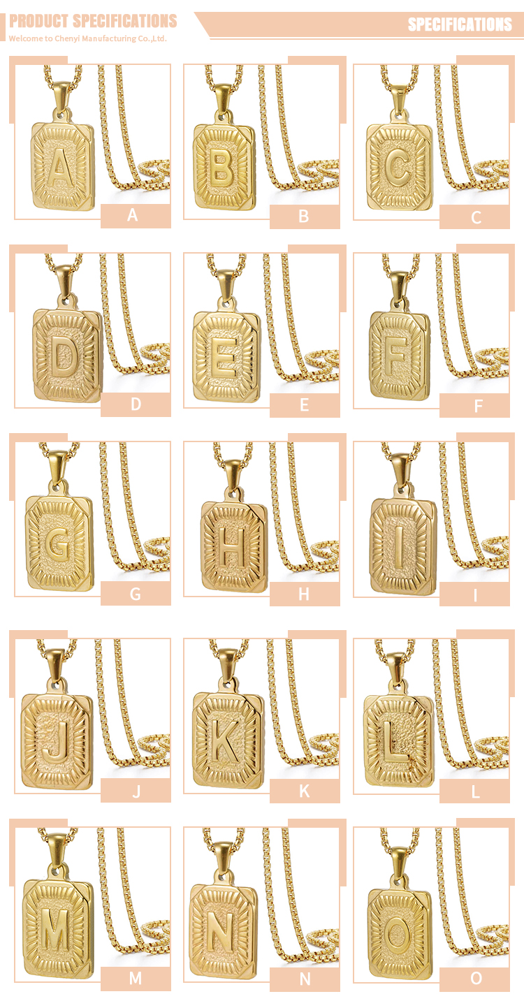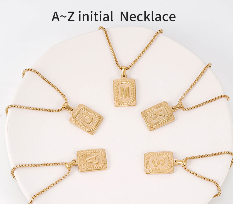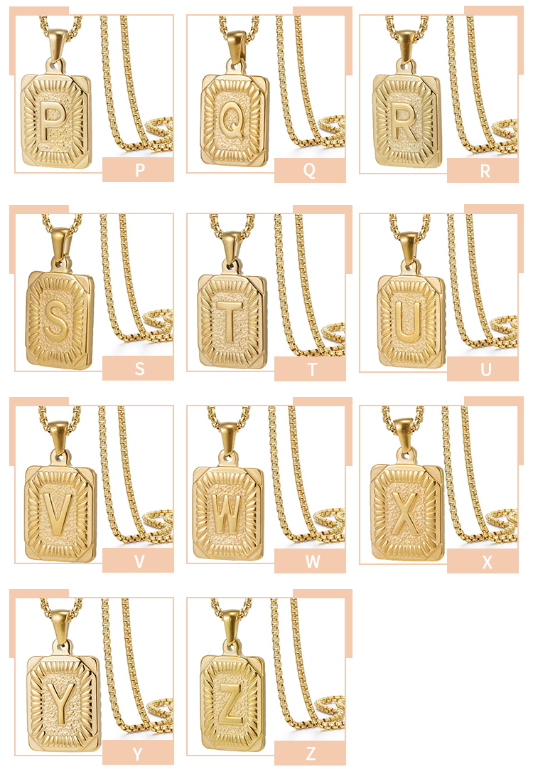 Packing and delivery for Fashion women mens recycled Stainless Steel 18k gold plated layered Square engraved letter A~Z initial jewelry Necklace
