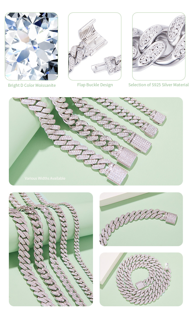 Fine Jewelry Necklace Row Diamond Cuban Moissanite Cuban Link Chains