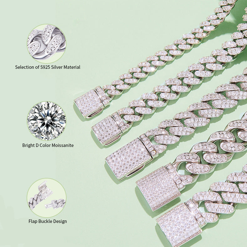 Fine Jewelry Necklace Row Diamond Cuban Moissanite Cuban Link Chains