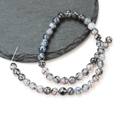Gray Agates Beads Smooth Black Pattern Round Loose Stone Beads for Jewelry Making DIY Bracelet Necklace Charms Accessories