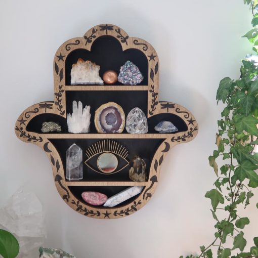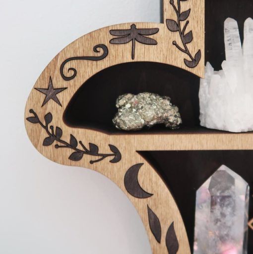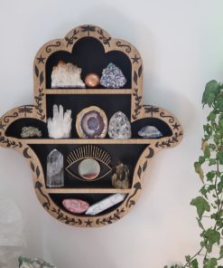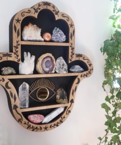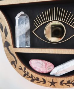 This design is a perfect magical way to display your crystals and comes complete with a beautiful addition of a gold eye in the middle with a gold tinted reflective mirror.