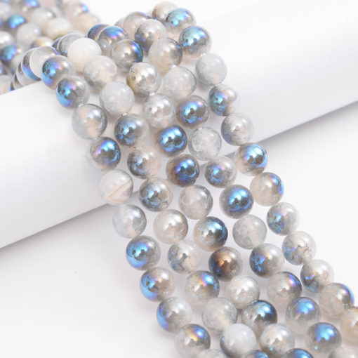 Light Blue Agates beads Metallic Coated Cracked Loose Stone Bead for DIY Jewelry Making Bracelet Necklace Charms 4/6/8/10/12 MM