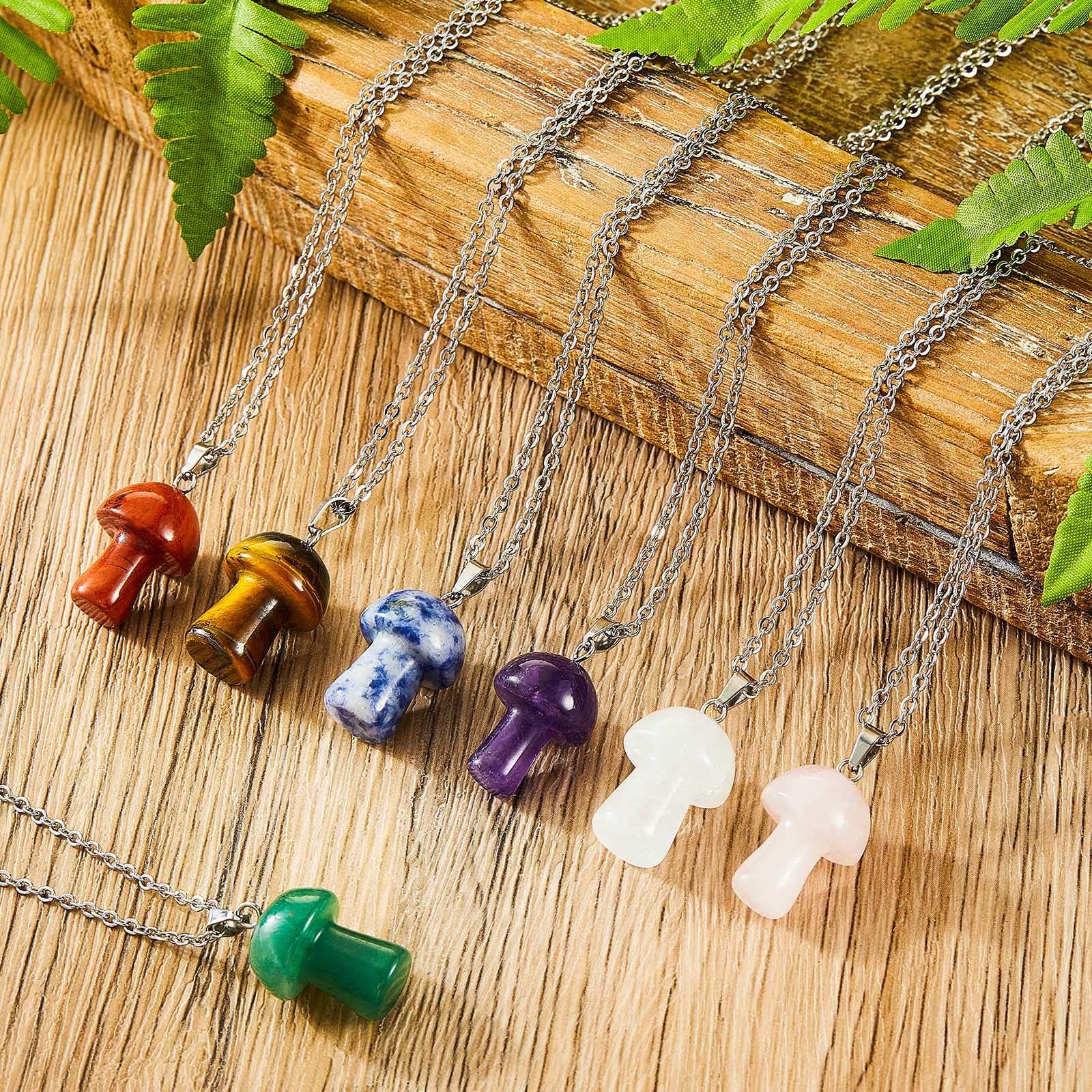 Material: Natural Gemstone, material about these pendants will be sent randomly, each one is unique in color, texture and shape. The buckle on the top of the gemstone is made of high quality brass, connect the stone pendants firmly.