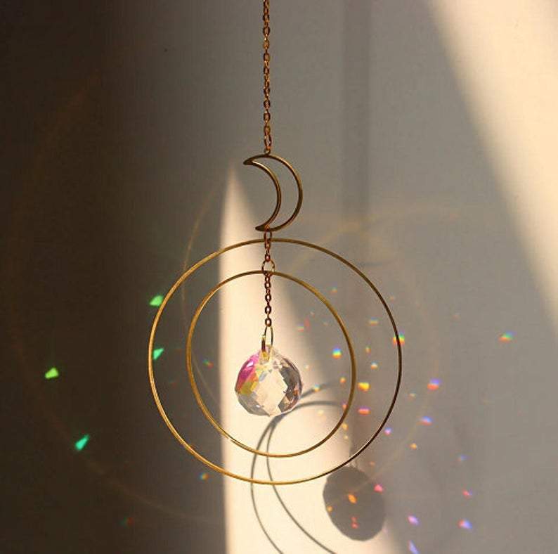 Moon Sun Catcher Hoops Rainbow Crystal Hanging Wall Hanging Art