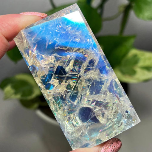 Natural Hand Carved Healing Clear Crackle Quartz Block Freeform