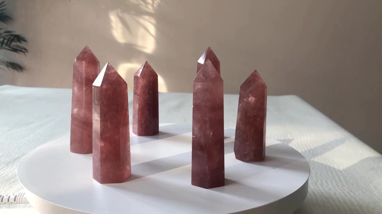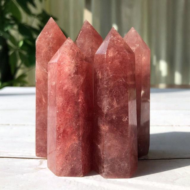 SKU: 6204387754164-natural-stone-healing-wand-red-strawberry-quartz-tower-crystal-point