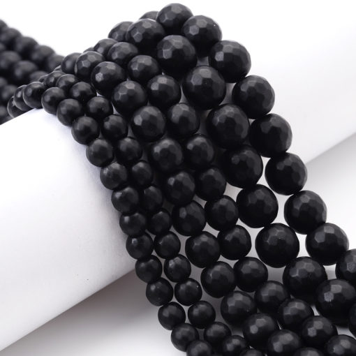 Natural Stone Beads Black Matte Faceted Loose Spacer Bead for Jewelry Making DIY Charm Bracelet Accessories 4/6/8/10/12mm