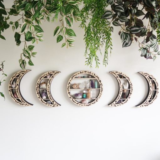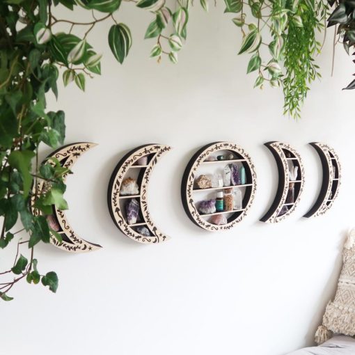 These shelves are perfect to display crystals with inner shelves that are just under 1 inch deep for your crystals to sit on, please make sure you measure your crystals before purchasing to make sure they will fit, the very small crescent moons on the end are for your tumble stones or very small crystals.