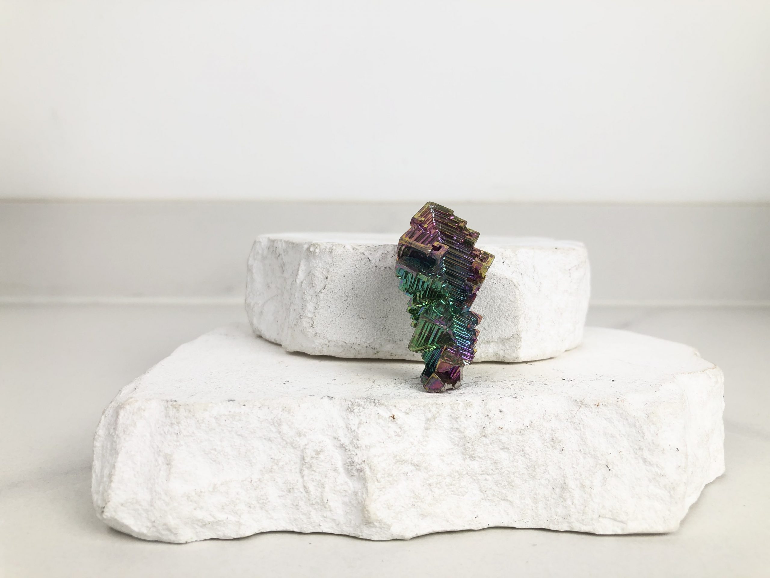 - With each being Hand Grown from molten bismuth in laboratory controlled conditions. Creating a unique individual shape, iridescent luster, color and intricate crystalline structure for every Crystal. No other crystal will be like yours.
