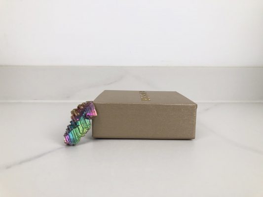 - Natural rainbow colors develop as the crystal is exposed to air and cools that then create the luminescent iridescent colors of the rainbow that you see in the infinite pyramid structure.