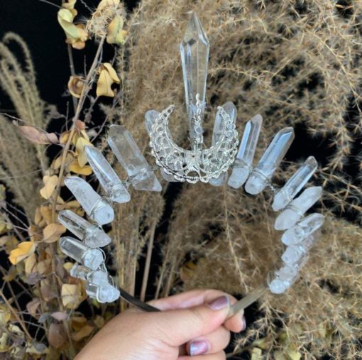 SKU: 6800010608820-raw-clear-quartz-crystal-crown-moon-tiara-wicca-jewelry-wedding-crown-goddess-headpiece-crown-royal