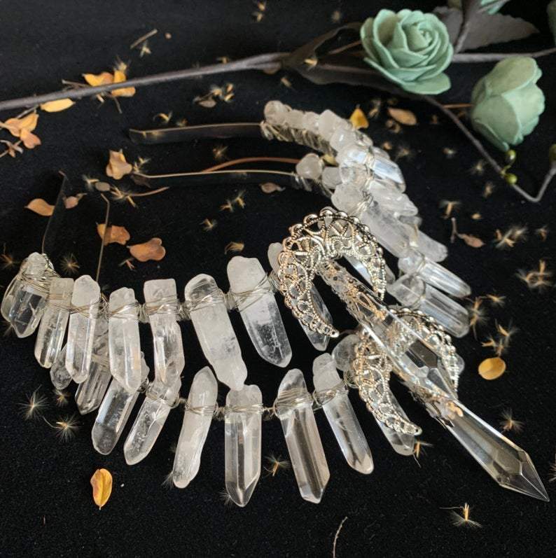 Raw Clear Quartz Crystal Crown/Moon Tiara