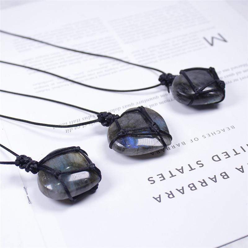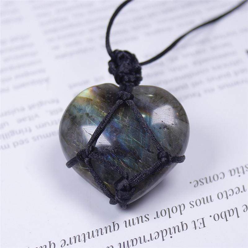 Rope Labradorite Heart Shaped Pendant For Decoration