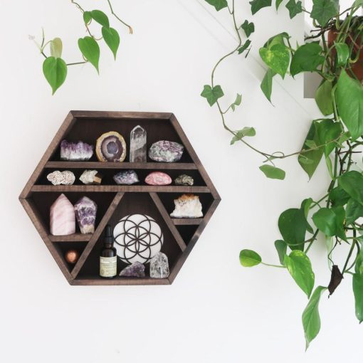 This unique hexagon crystal shelf is built perfectly for displaying your crystals and keepsakes.