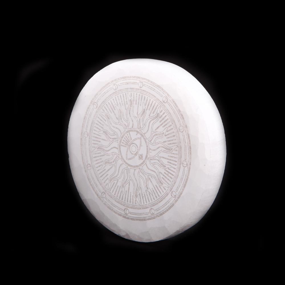 SKU: 6538179248308-selenite-plate-crystal-charging-cheap-rate-wholesale-engraved-coaster-carved-pad-disk-for-with-eye-agate-large-slab