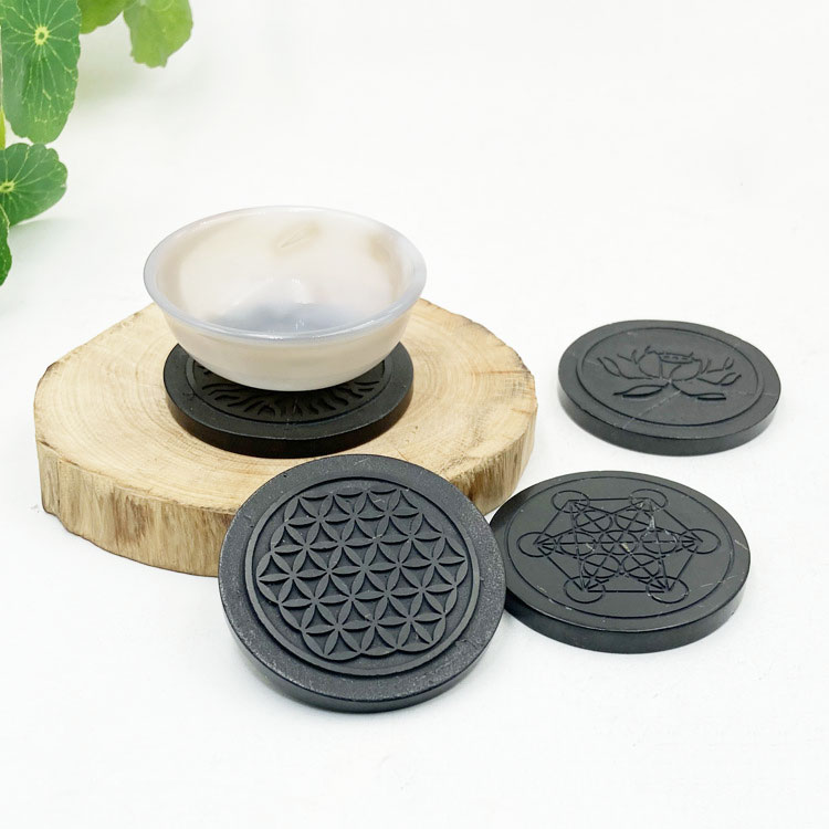 Shungite Coaster Water Cup Mat Set Tea Drink Shungite Coasters