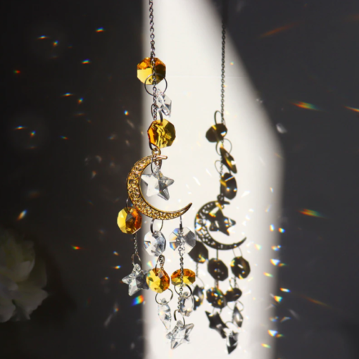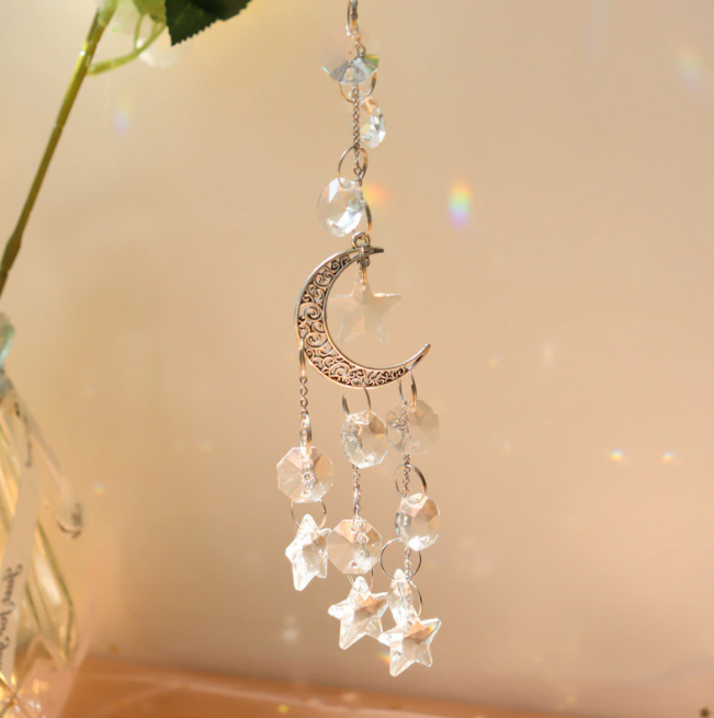 Star Moon Suncatcher ,Hanging Window Crystal Prism,Magical Home Decor, Lightcatcher, Rainbow Catcher New Home Gift,Wedding Decor
