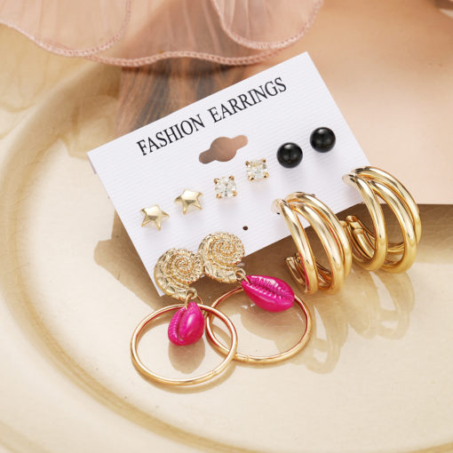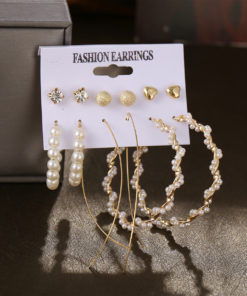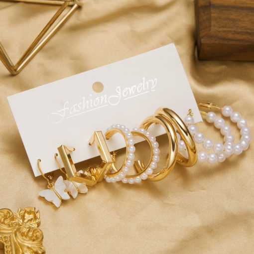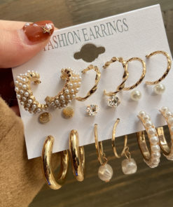 Vintage Geometric Gold Metal Earrings Set Punk Pearl Dangle Drop Earring Jewelry For Women