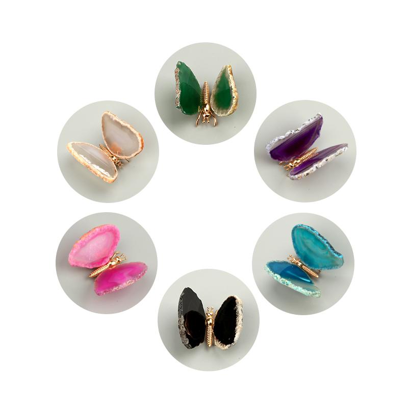 Wholesale Bulk Natural Crystal Brazilian Agate Slice Butterfly 4-6cm Sliced Small Dyed Black Pink Purple Blue Green