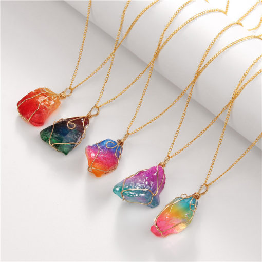 Wholesale Raw Clear Crystals Healing Stones Natural Amethyst Wire Wrapped Pendant Necklace Jewelry